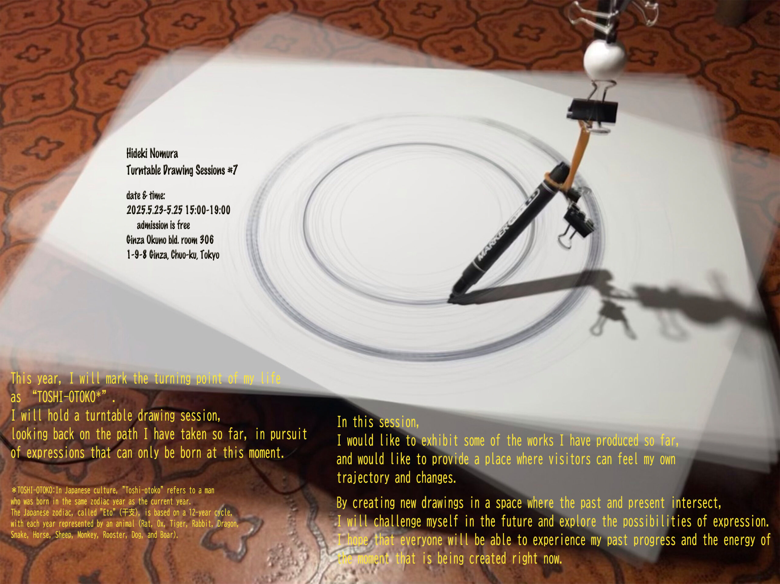 お知らせ Turntable Drawing Sessions #7 2025/05/192025/05/19 Turntable Drawing Sessions #7「時を刻むドローイング」 ―これまでとこれからの交差点野村秀樹2025年5月23日(金)〜5月25日( […]