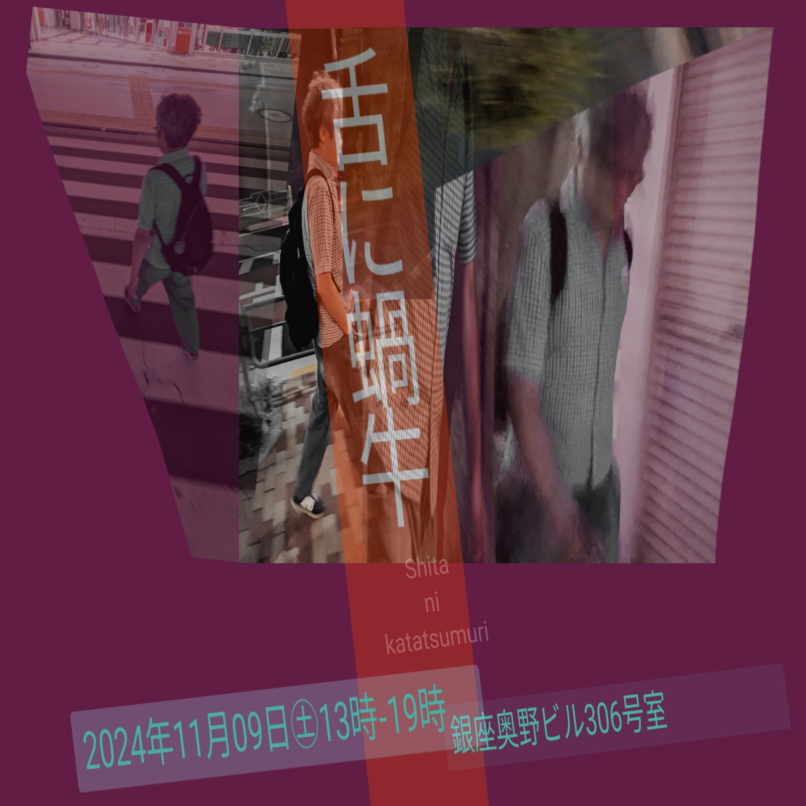 お知らせ 舌に蝸牛 2024/10/142024/10/13 舌に蝸牛 《中央区まるごとミュージアム参加企画》 企画:吉成 2024年11月9日(土)13:00〜19:00 歩く宙を浮く。たまに、川に沿い歩く。人知れず、も […]